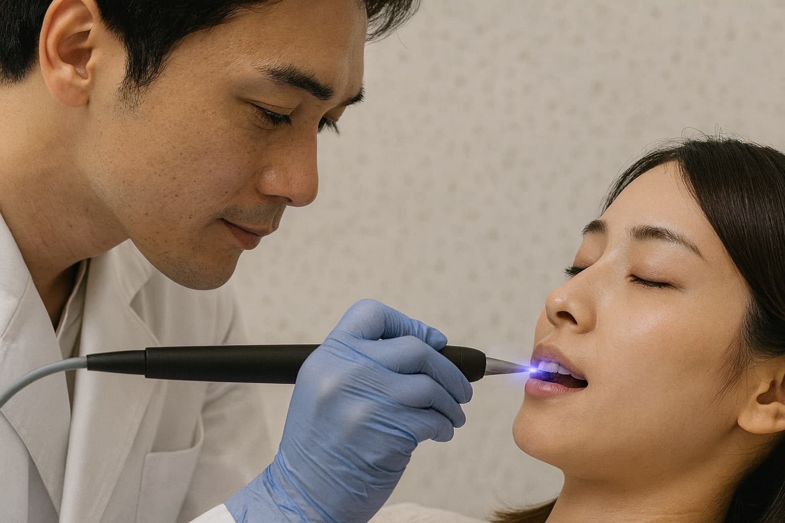 また、ブルーラジカル治療では光照射と同時に超音波振動を利用して歯石やプラークの除去を補助します。この併用により、単なる殺菌だけでなく、物理的な病因除去も効率的に行うことができます。治療中の痛みも少なく、患者の心理的負担を軽減できる点も大きなメリットです。